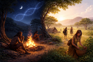 Samen vormden ze een systeem waarin iedereen een plek had. Onderzoek naar chronotypes laat ook zien dat mensen van nature verdeeld zijn. Dat heeft waarschijnlijk een voordeel gehad voor groepen.